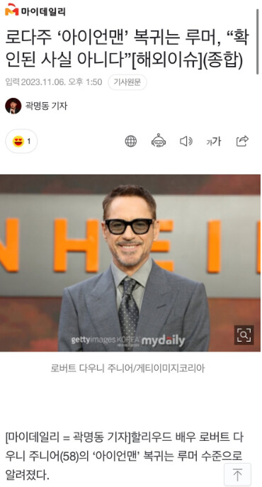 연기는 어차피 만렙인거 이번에 오펜하이머에서도 확인했고 액션은 깡통가면 쓴 대역이 하면 되지 않을까 연기에 대한 기술적인문제는 없을것같음 문제는 2026년에 아이언맨이 은퇴번복하고 다시 영화에 기어나와서 스토리에 잘 섞이느냐지