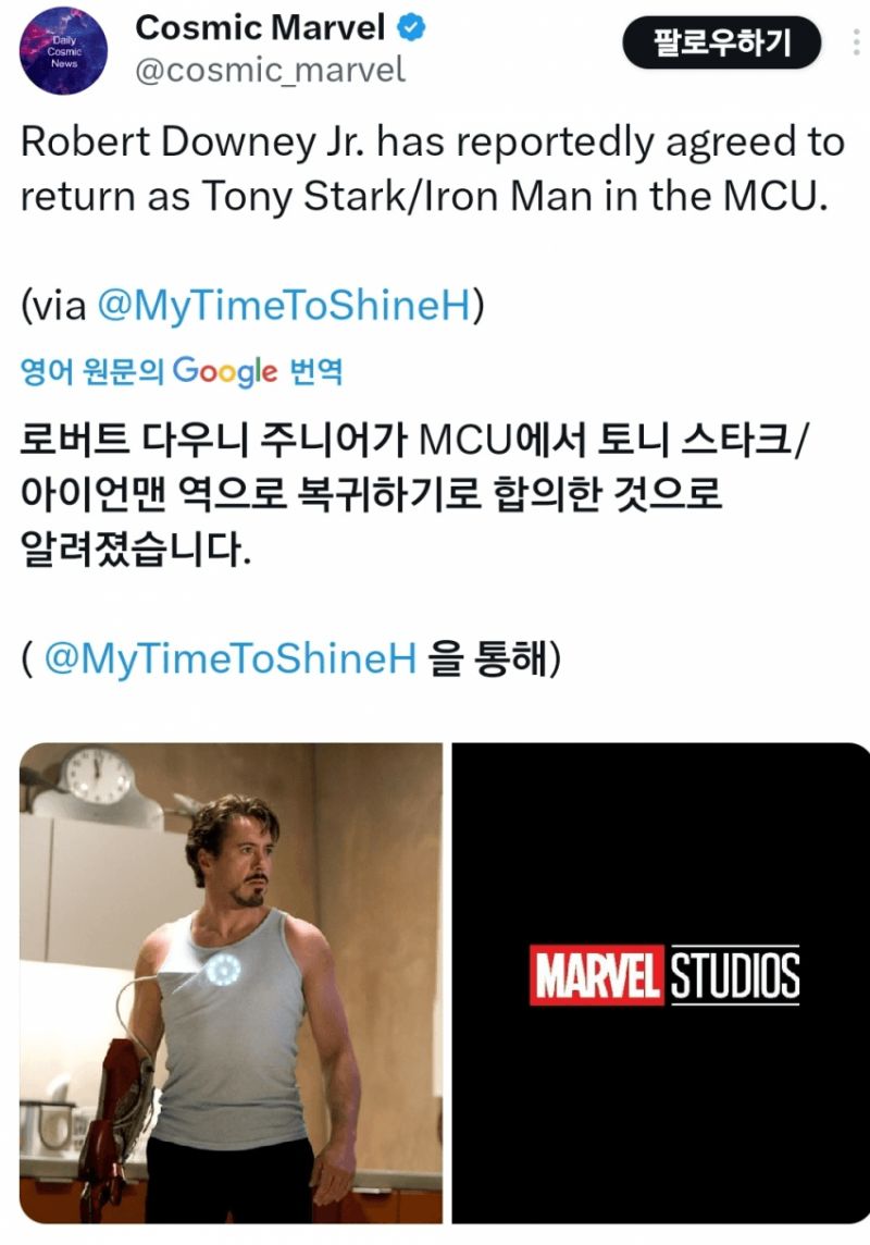 아이언맨은 이제 그냥 버랴야 되는거 아니냐 배우교체 하던가 다 늙어서 액션 연기가 됨??