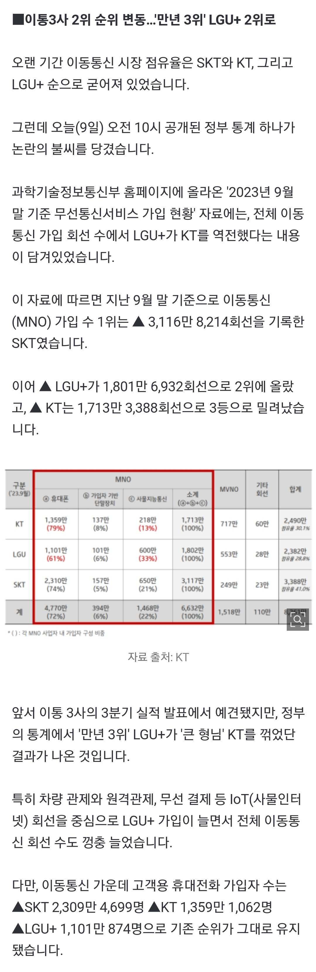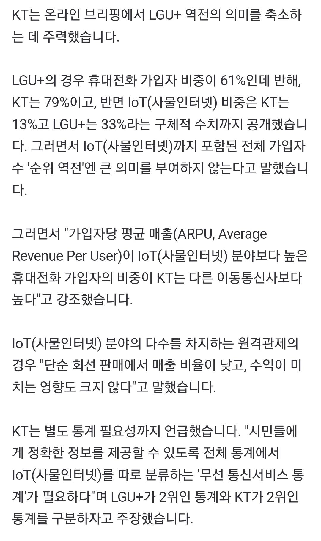 크트 싫은거랑 별개로 IoT 1회선이 휴대폰 가입자 1명이랑 동등하진 않지 유플이 IoT 회선 성장률이 높은데 특별한 이유가 있나 엘지전자 제품이 유플을 밀어주거나 하는건 아닐거고
