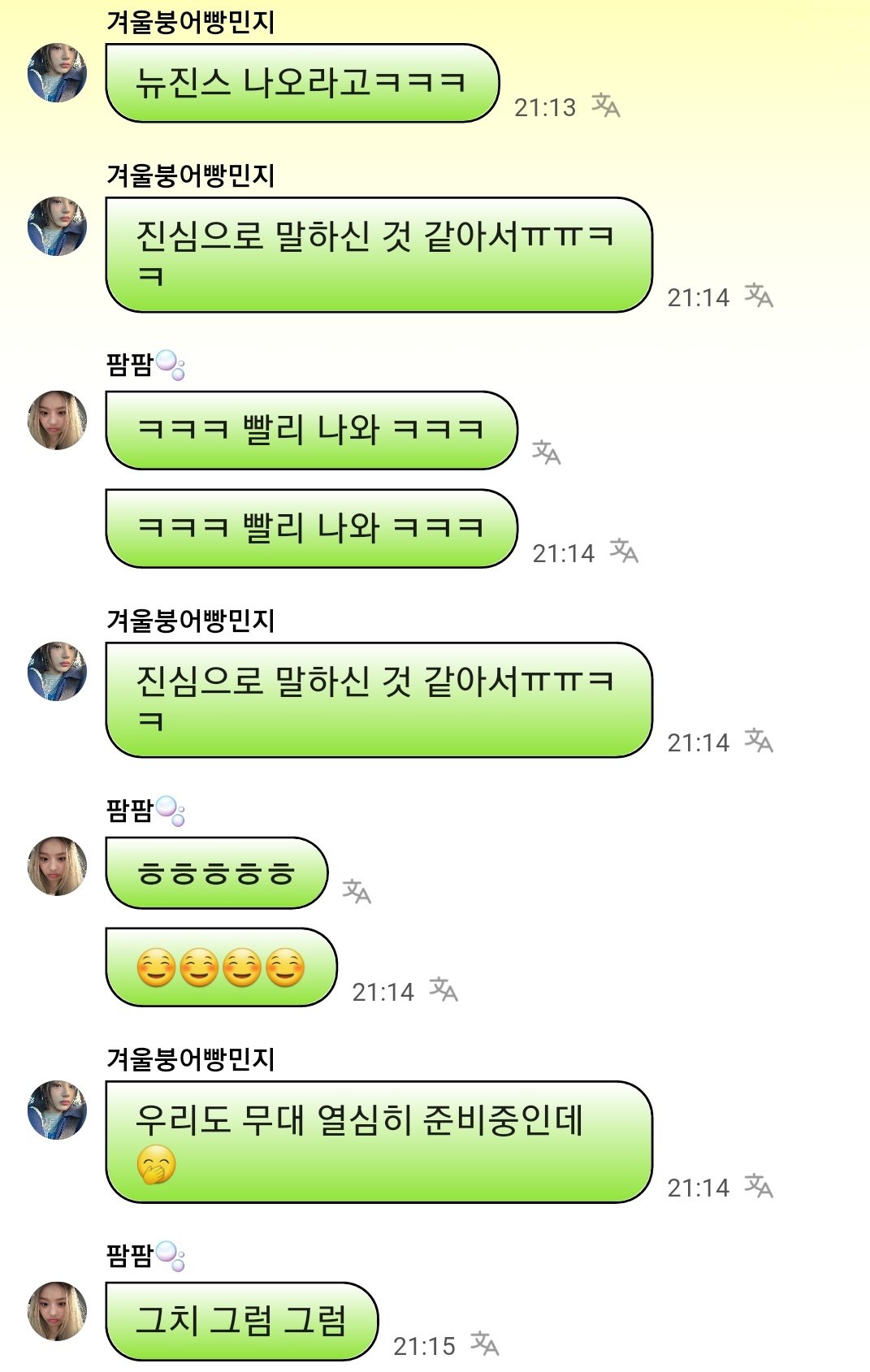 민지는 지난 주말에 징동전 보고 있던 중이라 실시간으로 '뉴진스 나와' 들었다고.