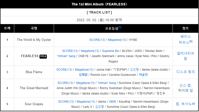 기존에 르세라핌이 발표했던 곡들 프로듀싱 라인업에 없는 인물들로 보이는데