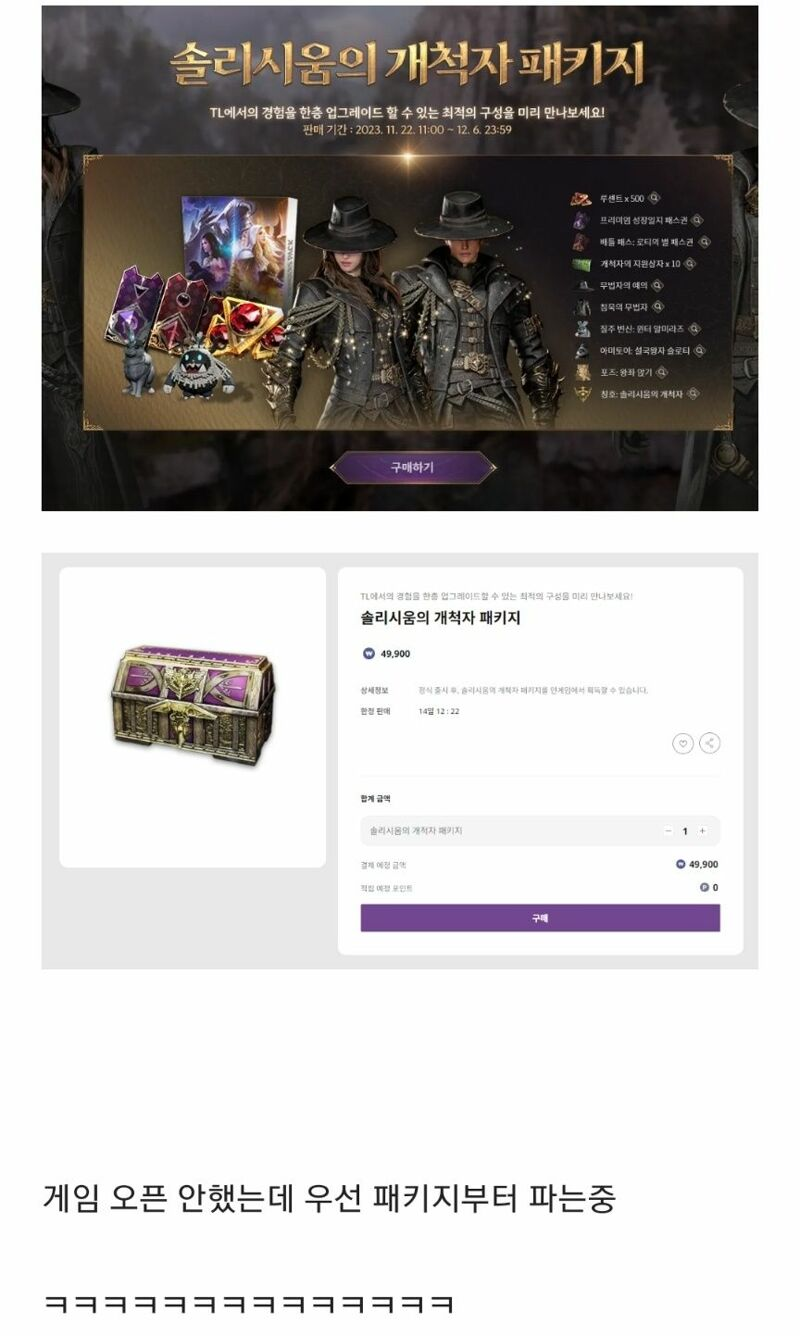 TL세대를 위해 패키지부터 판다