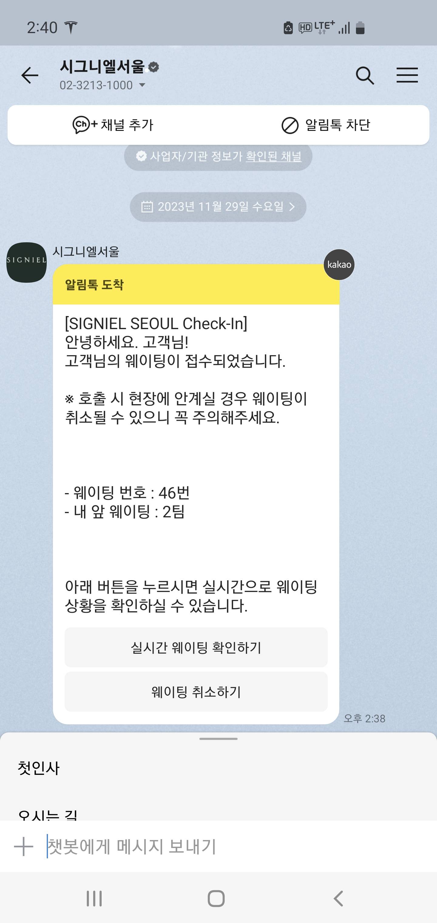 시그니엘은 체크인도 웨이팅있음 ㅋㅋ