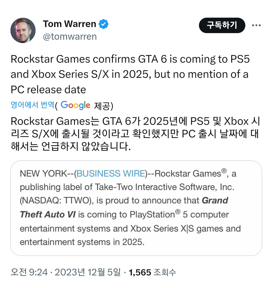 아무튼 기존 락스타 게임들 봤을때 pc랑 동시 발매는 절대 안할거임