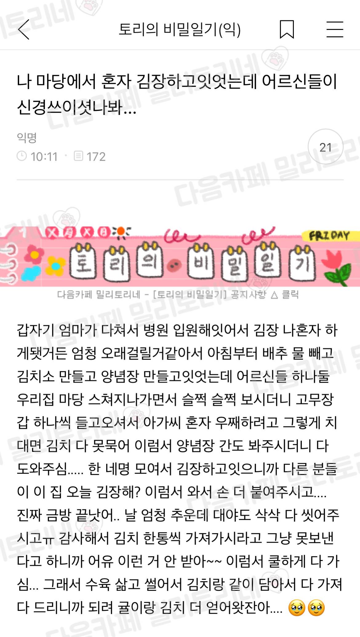 양이 준내많으니까 김장담근다고 하면 그어르신들 모이심ㅋㅋ