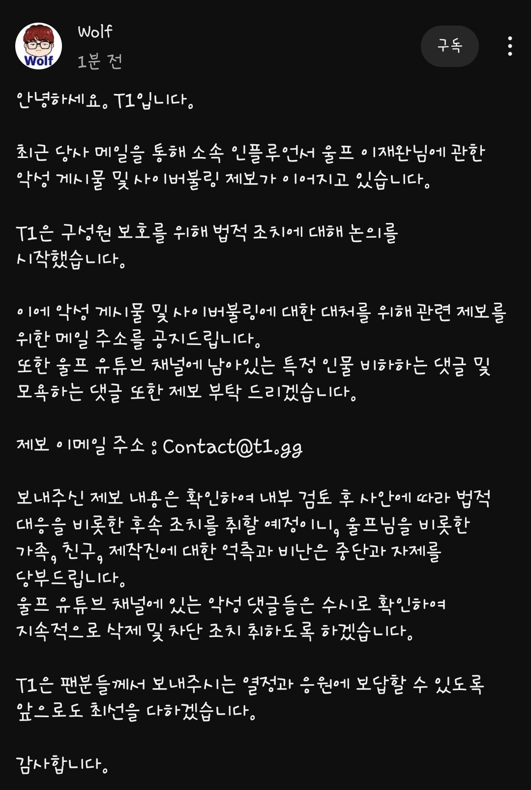 한편 T1 우승 이후로 야마 돌아버린 ㅆㄹㄱ들이 요새 울프 묻으려고 작업 중이라
