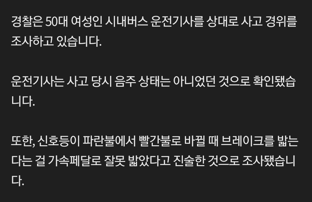 그런데 그렇게 출입문을 닫고 난 사고 버스가 다수의 보행자가 바로 앞 횡단보도를 건너고 있는 상황에도 불구하고 직진으로 출발하면서 사고가 발생했다.