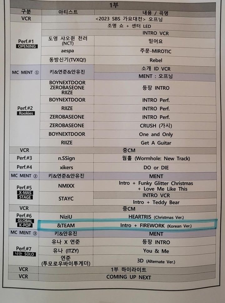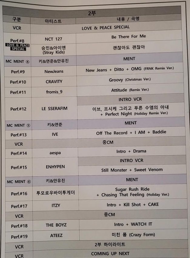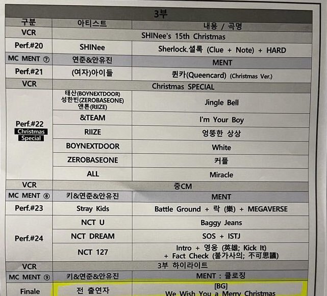 금일 ㅅㅂㅅ 가요대전 큐시트.