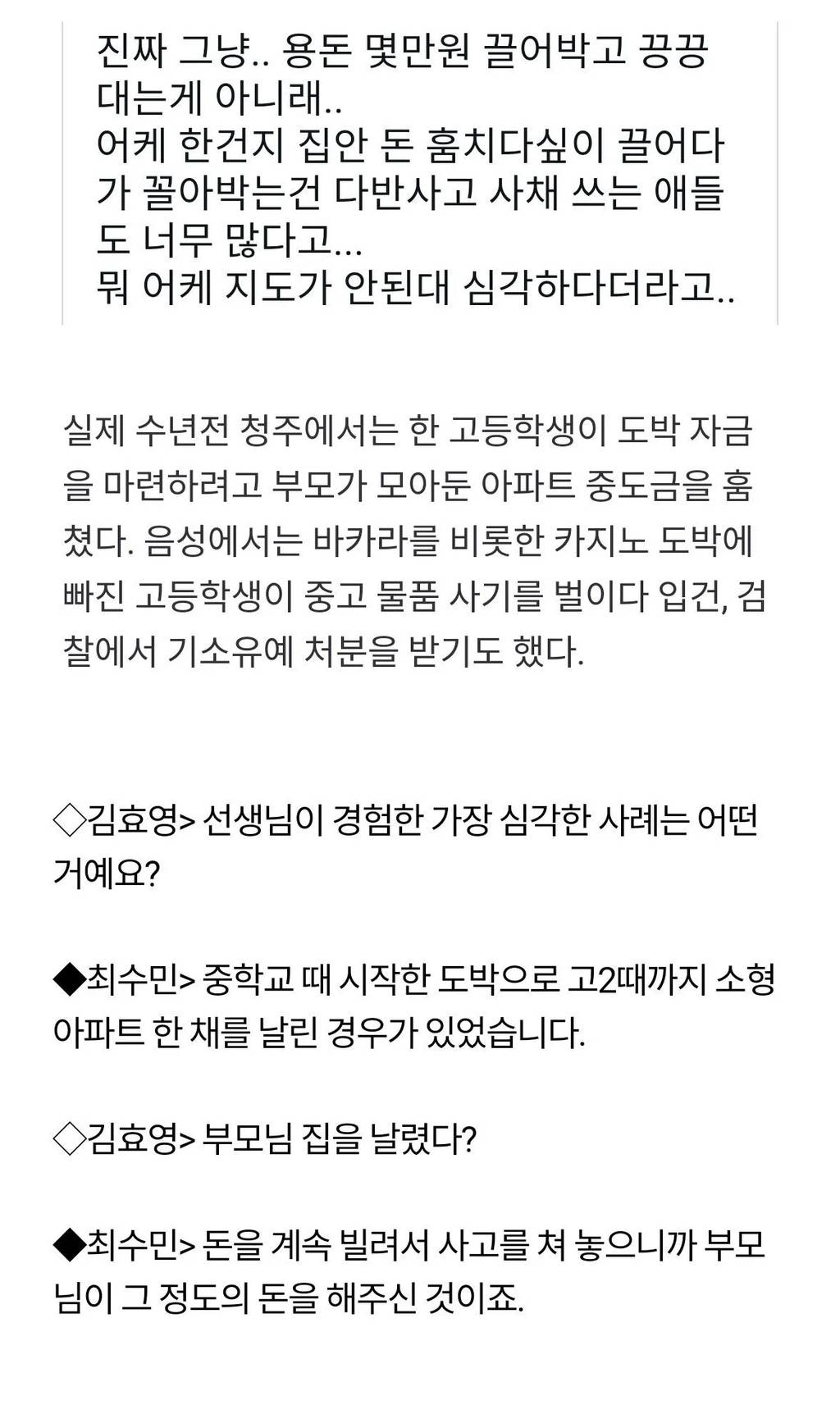 애시당초 성인도 빠져들면 답없는게 도박중독이고, 그게 청소년은 그동안은 어떻게든 접근 자체가 힘들었으니 큰 문제까진 안됐던 건데 (기껏해야 학교에서 이치니싼 하다가 몇천원 잃었겠지)
