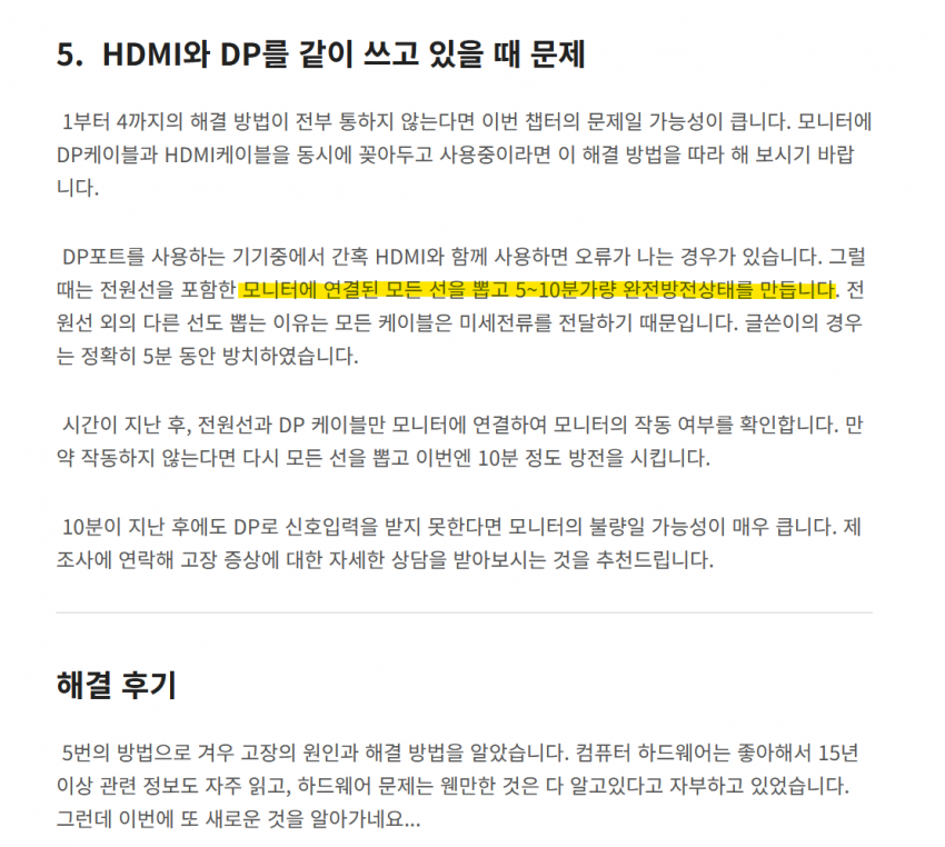 기존 컴엔 윈도우 부팅소리는 들리는 거 같은데 화면이 시작부터 아예 안 나옴.
