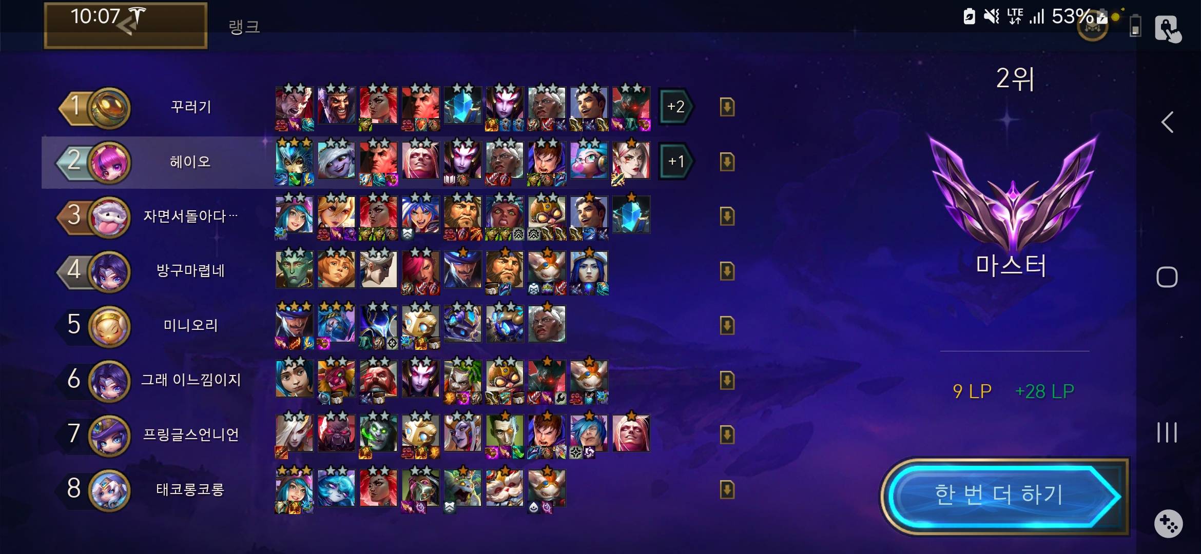 처가댁에서 롤체 마스터찍기 달성!