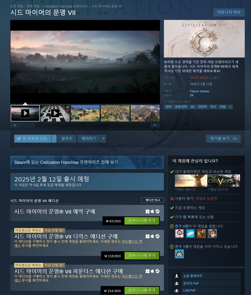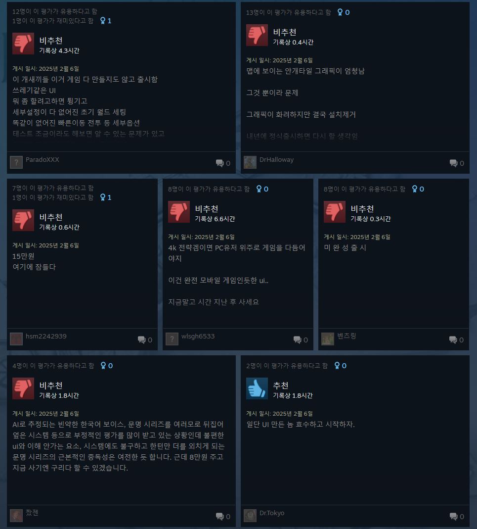 문명7 스팀평가가 벌써부터 좆박고 있음