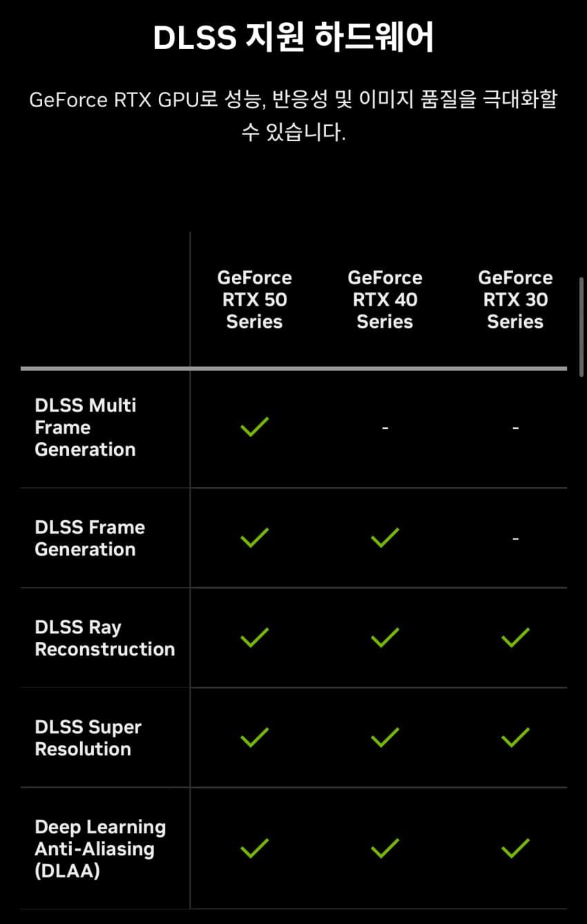 위 표를 보면 알겠지만 DLSS는 3000번대 글카도 됨