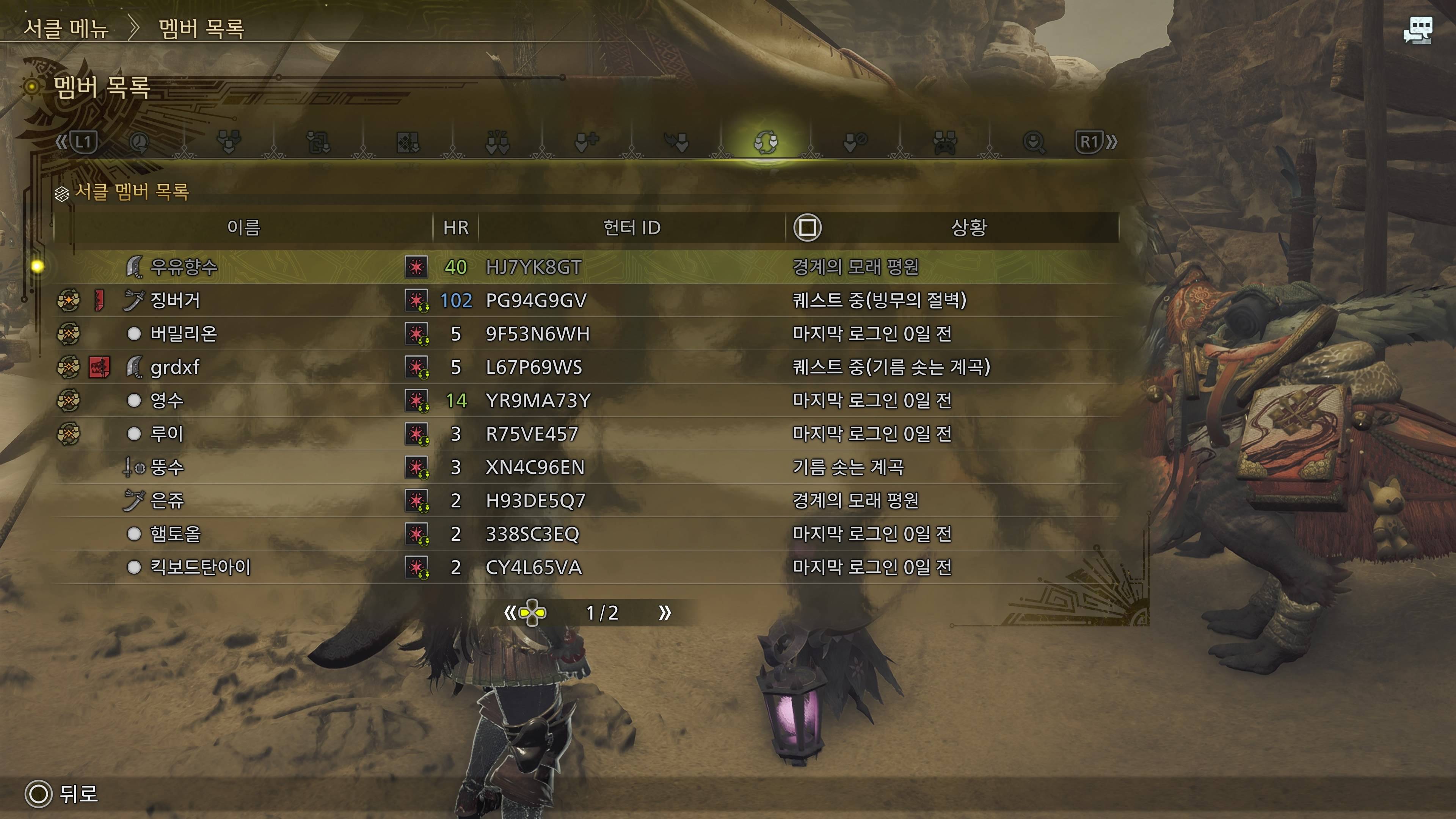 맨 위에부터 우유향수 - 발렌 징버거 - 사유라 버밀리온 - grdxf - 영수 - 영수 루이 - 히브 뚱수 - 나 은쥬 - 햄토올 - 킥보드탄아이 -
