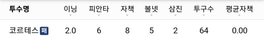 친정팀한테 흠씬 두들겨 맞고 2회 강판.