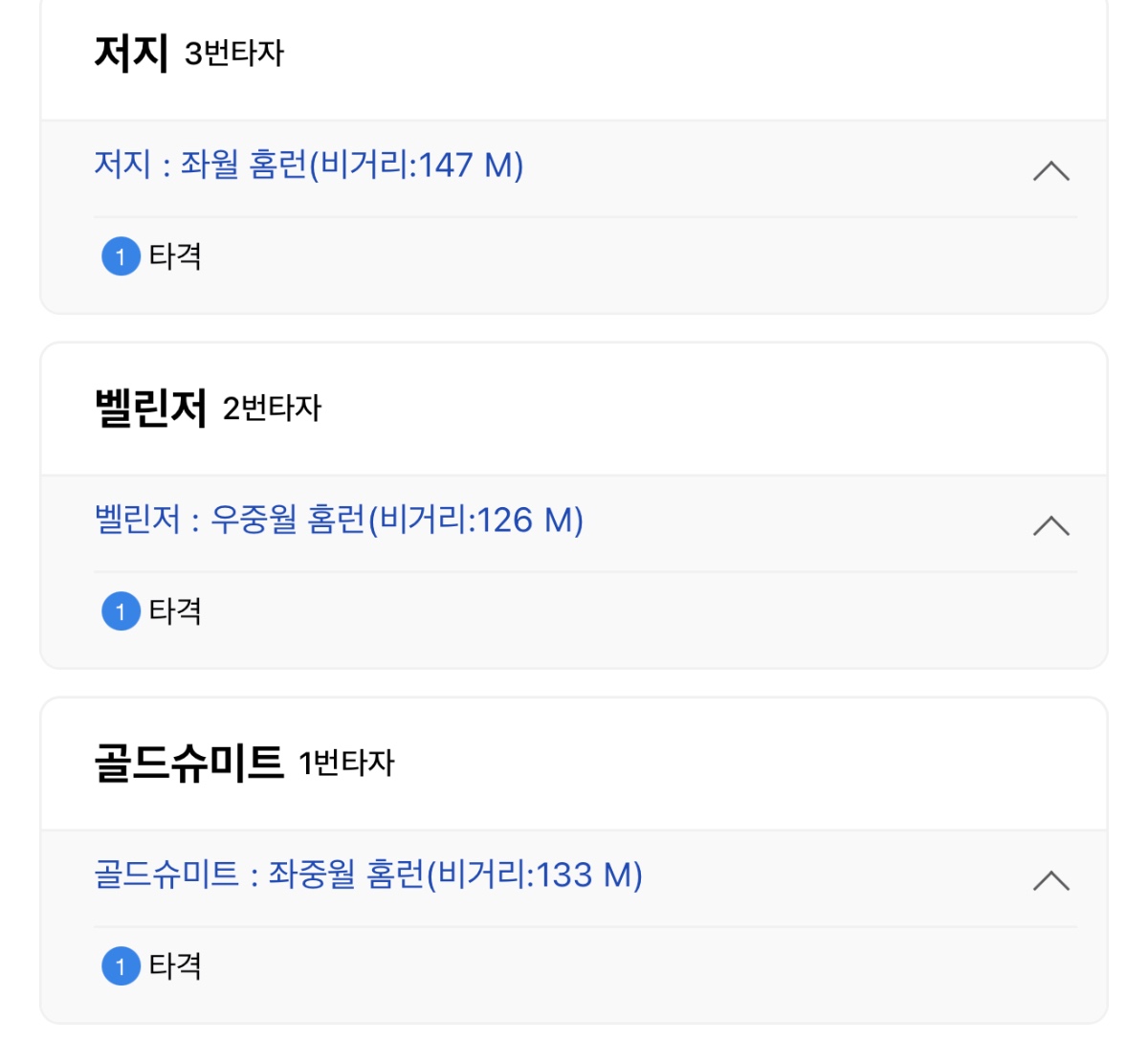 1회 1번 타자 초구 홈런, 2번 타자 초구 홈런, 3번 타자 초구 홈런