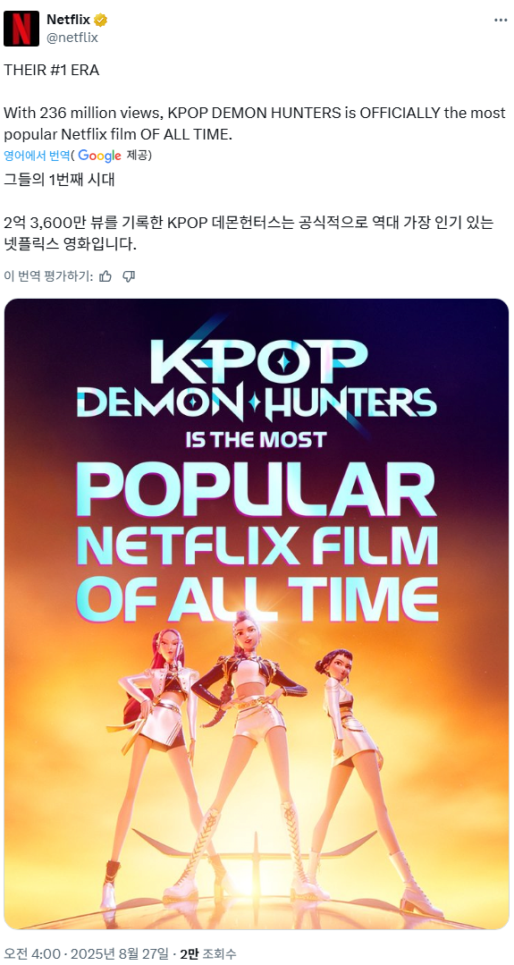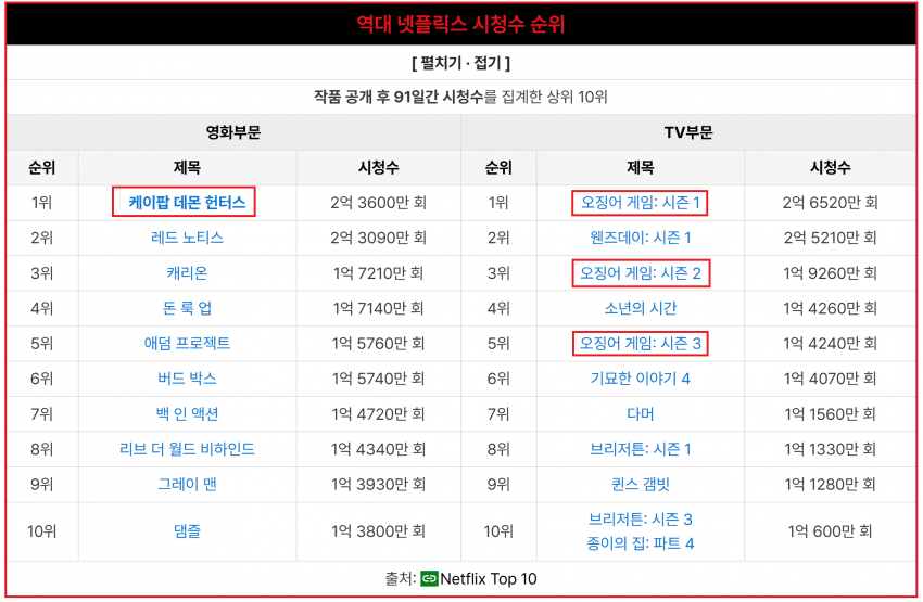 이로서 넷플 영화/TV 부문 1위는 모두 한국 관련 컨텐츠가 차지.