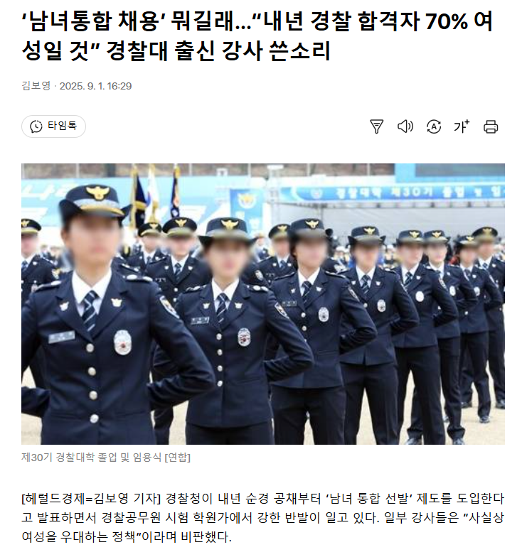 성별 통합해서 뽑는다고 그러니깐 체력 시험을 위 영상처럼