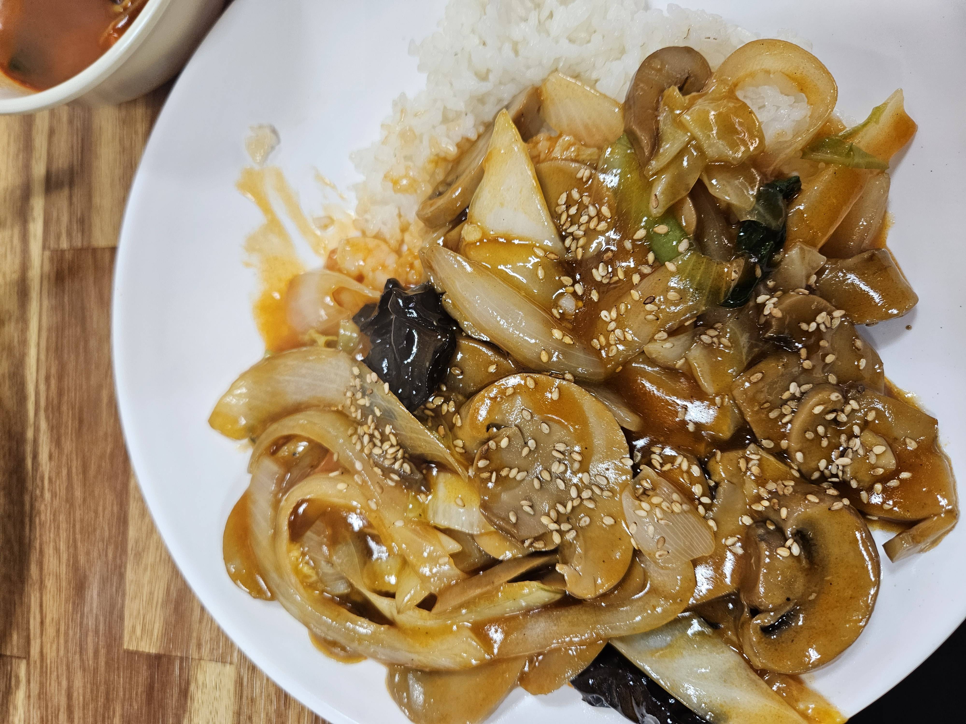 송이덥밥이면 고기가 모자를까봐 시킨 군만두