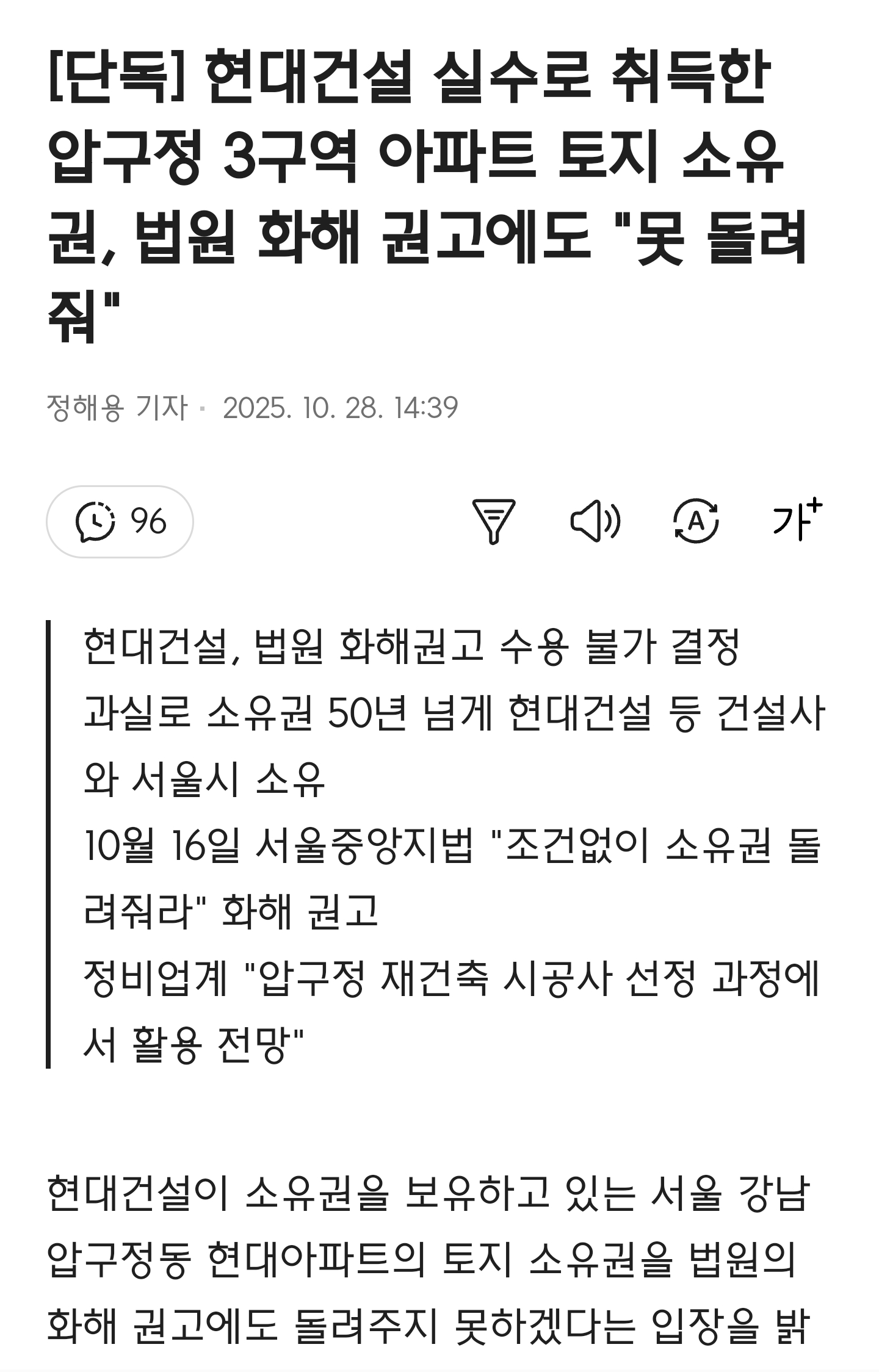 근데 승산이 있는게 아닌데다 시공사 선정 목적으로 저러는거란 이야기가 있음