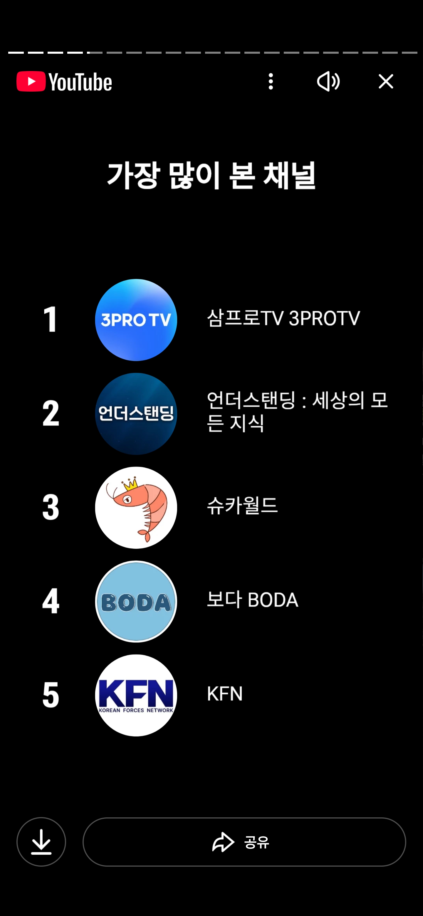 과학을 보다 저거 별로 보지도 않았는데, 나머지는 워낙 이런저런 유사채널들 쇼츠로 분산되다보니 1위먹었나보네
