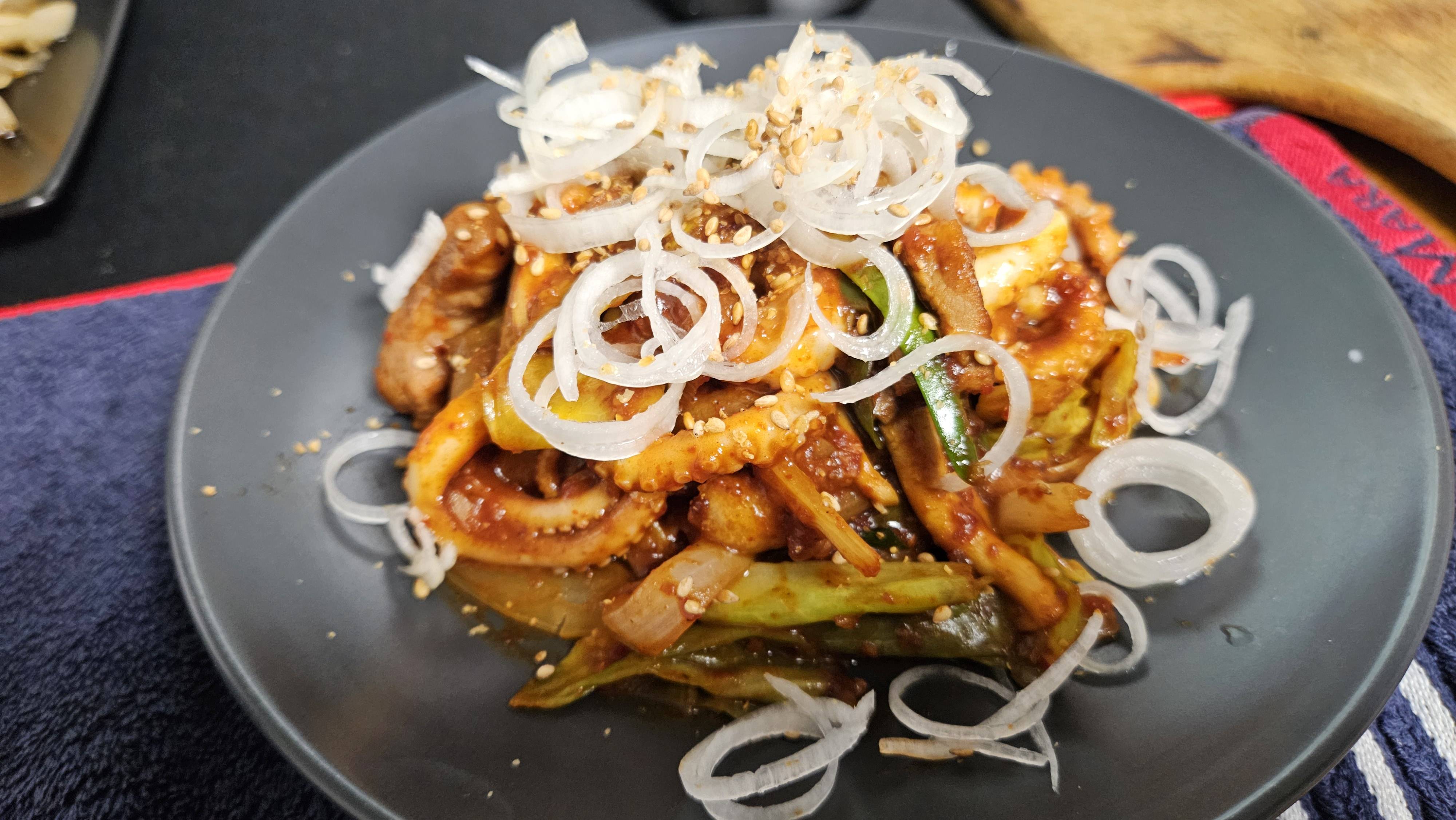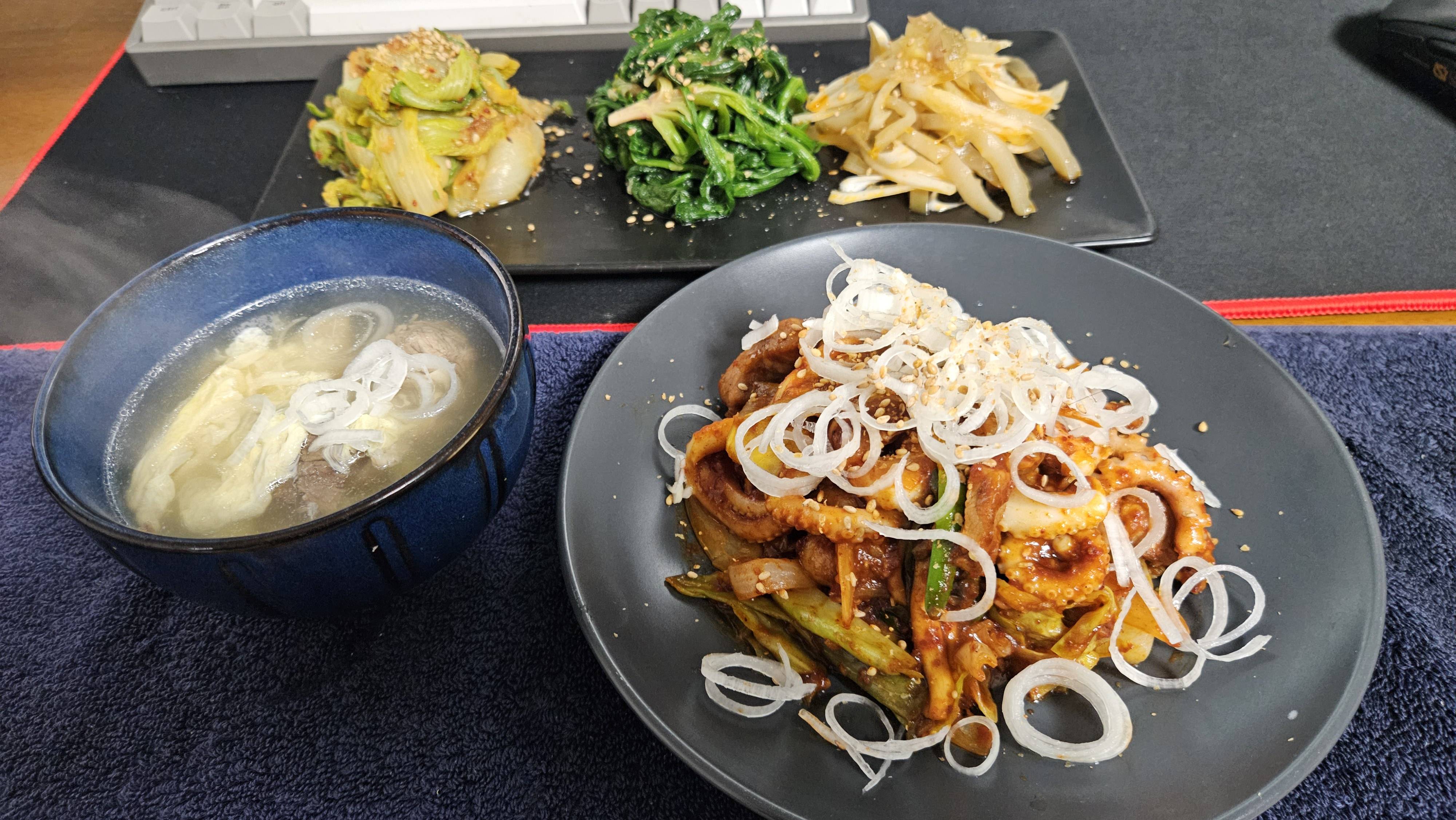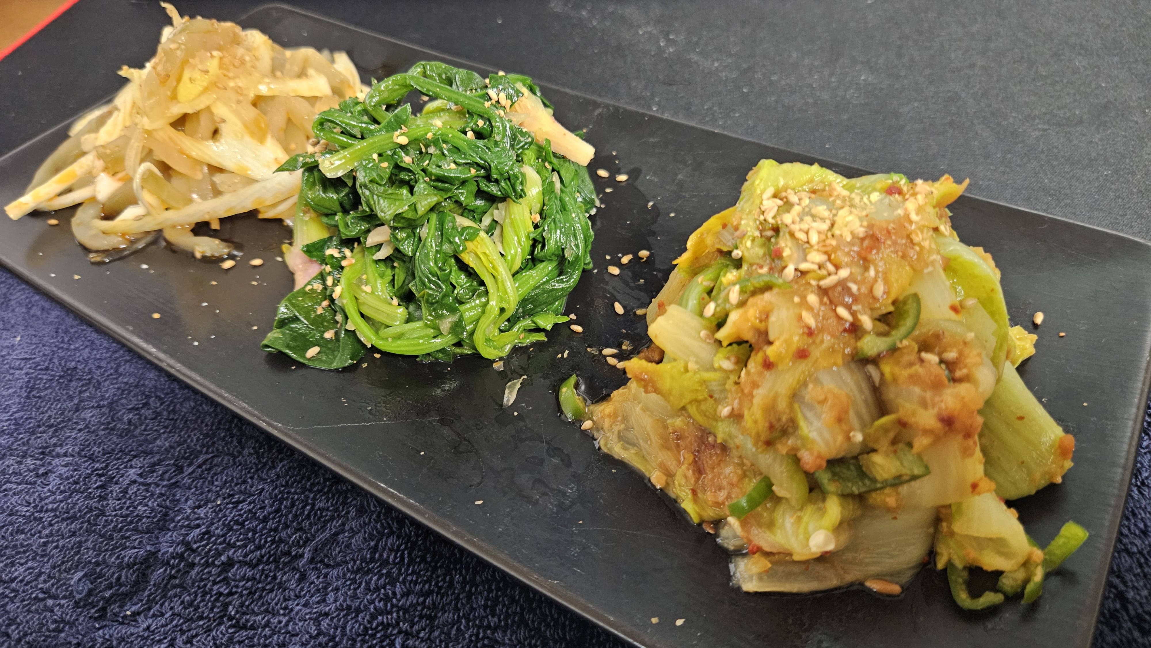 돼낚볶음 갈비탕(산거) 짜사이 삼초 배추나물 간다