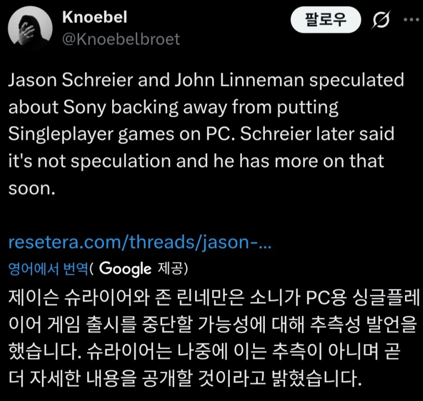 3.기존 전략을 철회하여 독점작을 pc에는 더이상 발매하지 않을거라는 소식이 나옴. 앞으로 독점작은 예전처럼 플스에서만 가능하게 됨.(제이슨슈라이어: 콘솔업계에서 신뢰도 높은 기자)