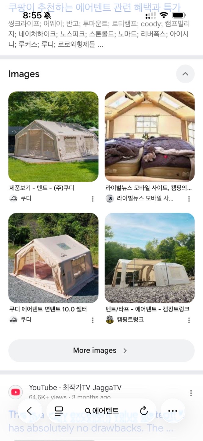 나도 캠핑이나 해볼까 싶어서 에어텐트 봤는데