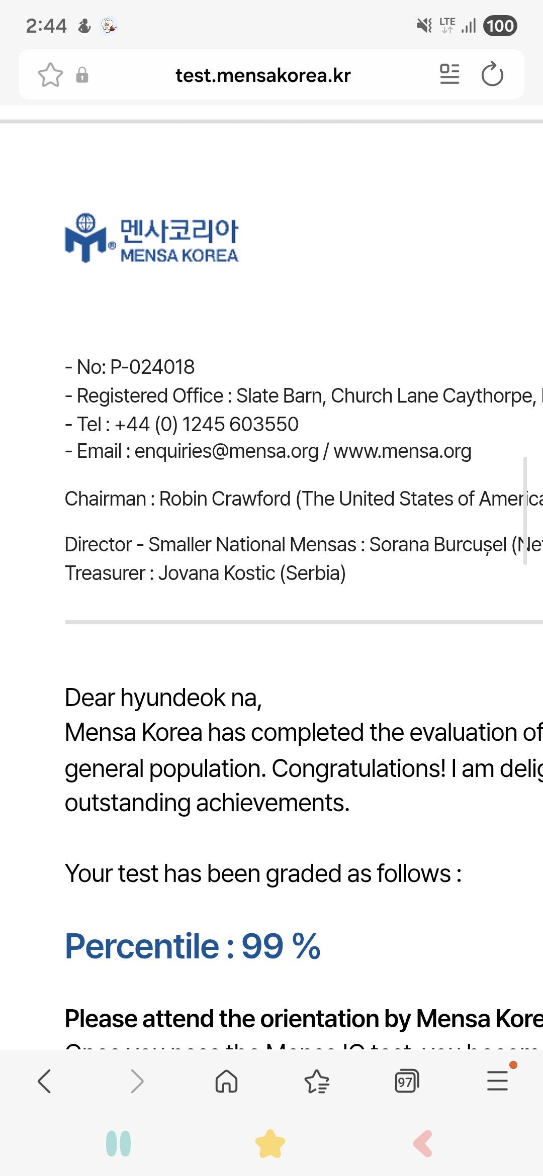 99% 퍼센타일인데 테스트에 따라 갈리는데 148+ 혹은 152+ 정도 된다고 들음