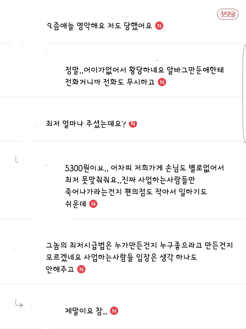 글쓴 날짜가 언젠지 모르겠네, 그런데 진짜 최저임금법은 바뀌어야하는데 시내편의점이나 외곽에 있는 편의점이나 같은 월급인게 말이 안되는데