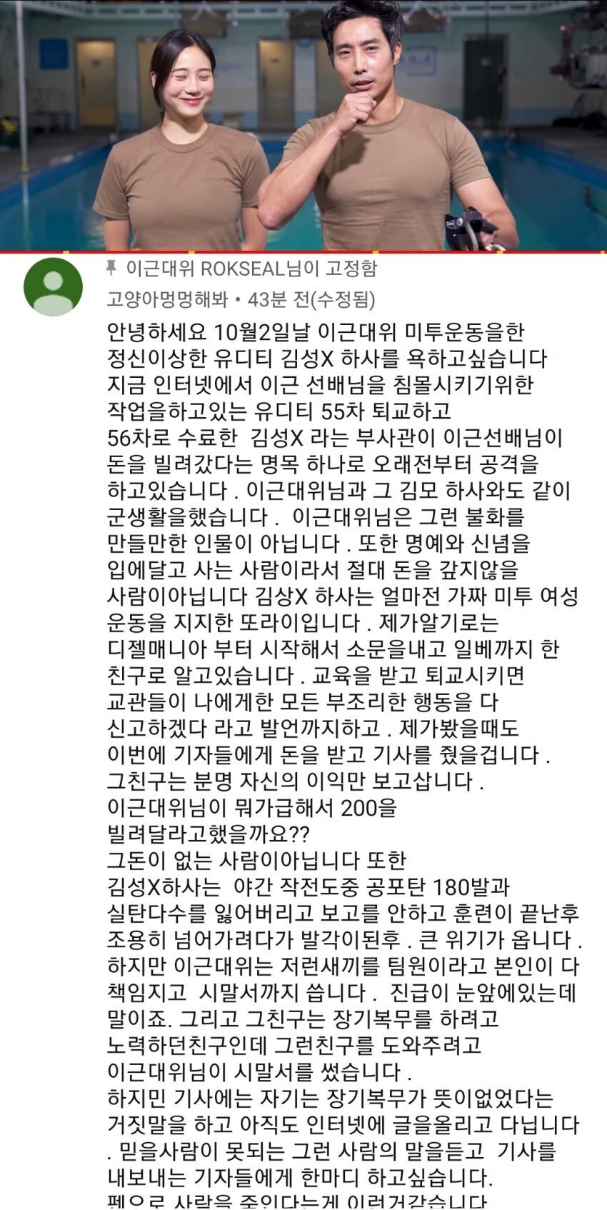 [유머] 이근 youtube..고정댓글..