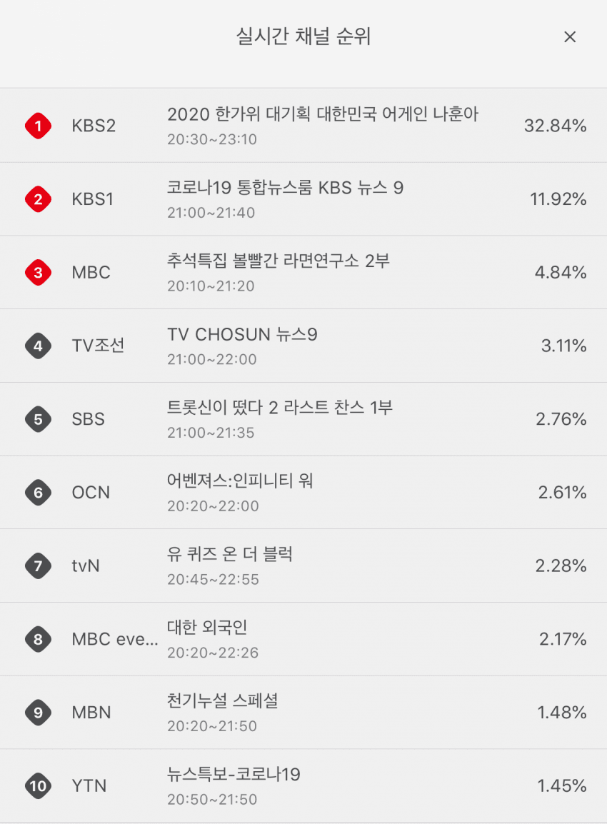 [유머] 실시간 올레tv 점유율(나훈아 효과)