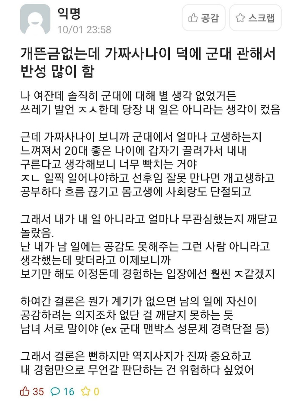 제 친구도 비슷한 이유로 안보더라고요 가혹하고 뭐 보기 어렵고 이런게 아니라 자기 좆같았던 군생활 오버랩된다고..