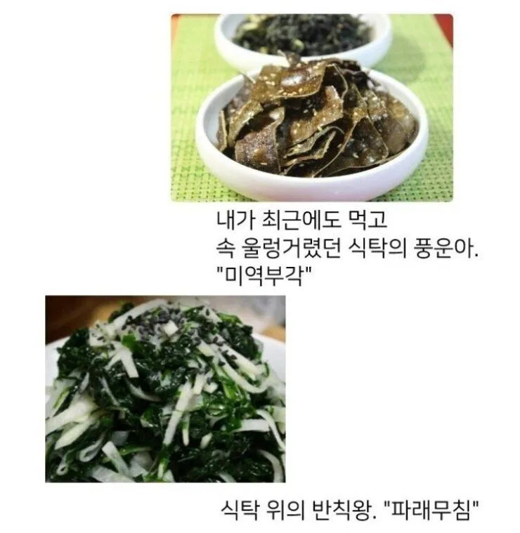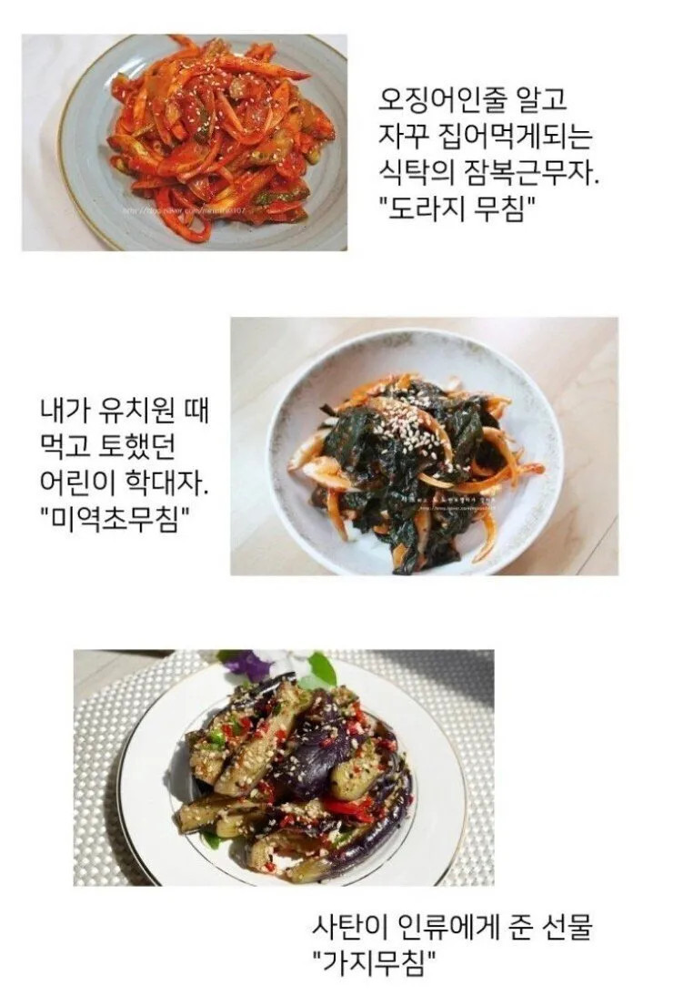 도라지무침은 특유의 향이 좋긴함. 가지볶음같이 흐물거리는건 잘 못먹겠어용 생굴 같은거...