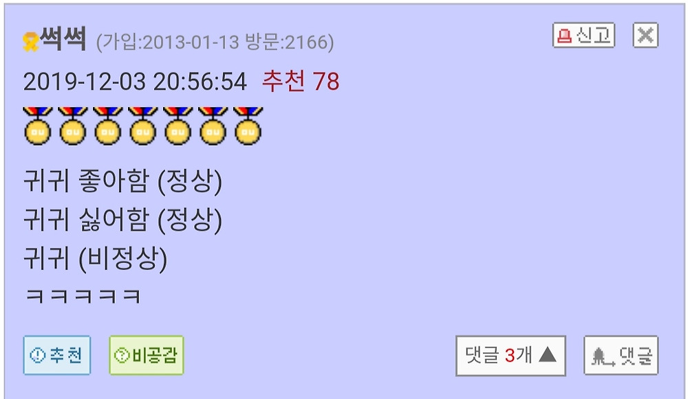 [유머] 귀귀가지고 뭐라하는자들에게 정상 비정상 알려줌