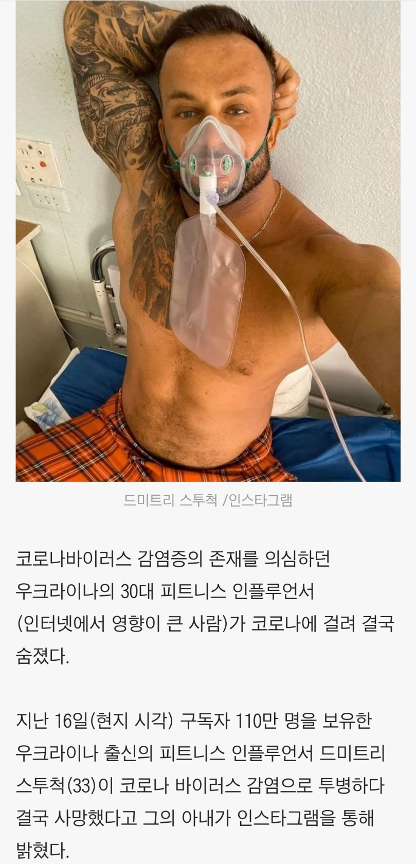 [유머] 코로나는 없다 - 외치던 피트니스 인플루언서 코로나로 사망