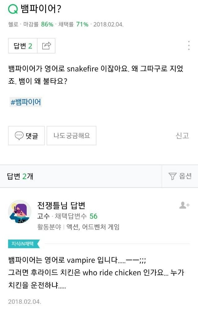 [유머] 뱀파이어가 영어로 snakefire 이잖아요.