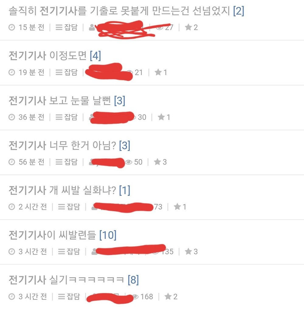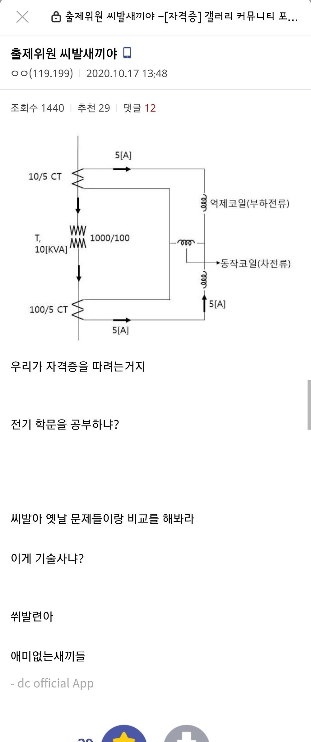 전기기사 자격증이 뭣같은게 너무광범위하고 학문적인 내용이 많음. 실무에서 단한번도 안써먹을 내용으로 넘쳐남. 비유를 하자면 한식 자격즏을 따려고 하는데 시험문제가 김치를 담그려고 한다. 얼갈이 배추 잎사귀 엽록소의 미토콘드리아의 염기적 특성대해 답하시오 이딴 문제를 풀어야 한다는거임. 실제 업무에 맞는 수준으로 완화하거나 필요한 분야에 따라 쎄분화 시킬 필요가 있음.