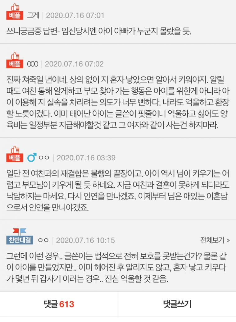 글쓴이도 완전 면피는 힘든게 어쨌든 씨앗은 지꺼임 콘돔을 쓰던 뭘 쓰던 애 낳을꺼 아니면 피임을 확실히 했어야지 ㅈ을ㅈ대로 놀리면 ㅈ되는 케이스