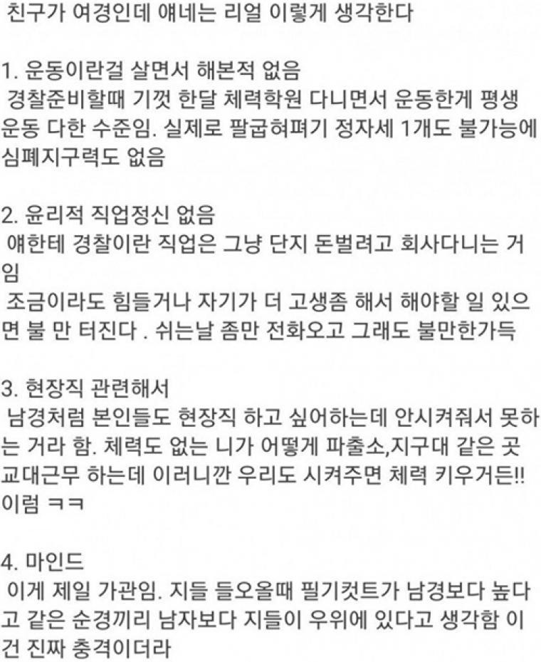 [유머] 여경 친구가 본 여경