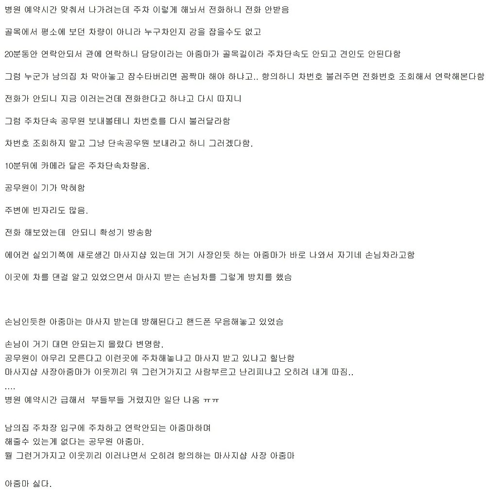 가끔 보면 진짜 주차 개좆같이 해놓고 가는 새끼들 있더라 존나 이기적인 새끼들임 사람 다니는 계단 앞을 그냥 막아놓질 않나 주차장 입구앞에다 대놓는 새끼들도 있고ㅋㅋㅋㅋ 남의 가게 앞에 대놓고 다른 가게 들어가는 씹쌔끼들은 이제 그냥 애교 수준임