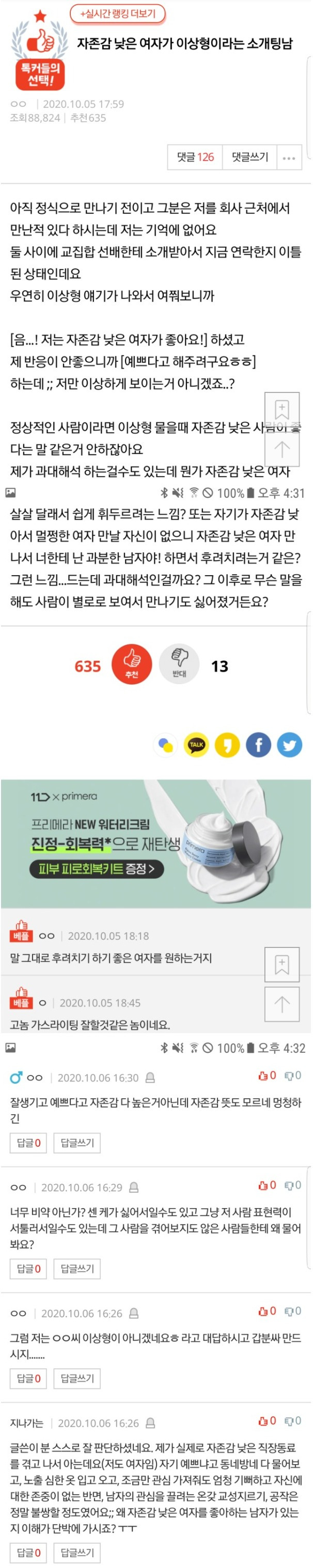 [유머] 자존감 낮은 여자가 이상형