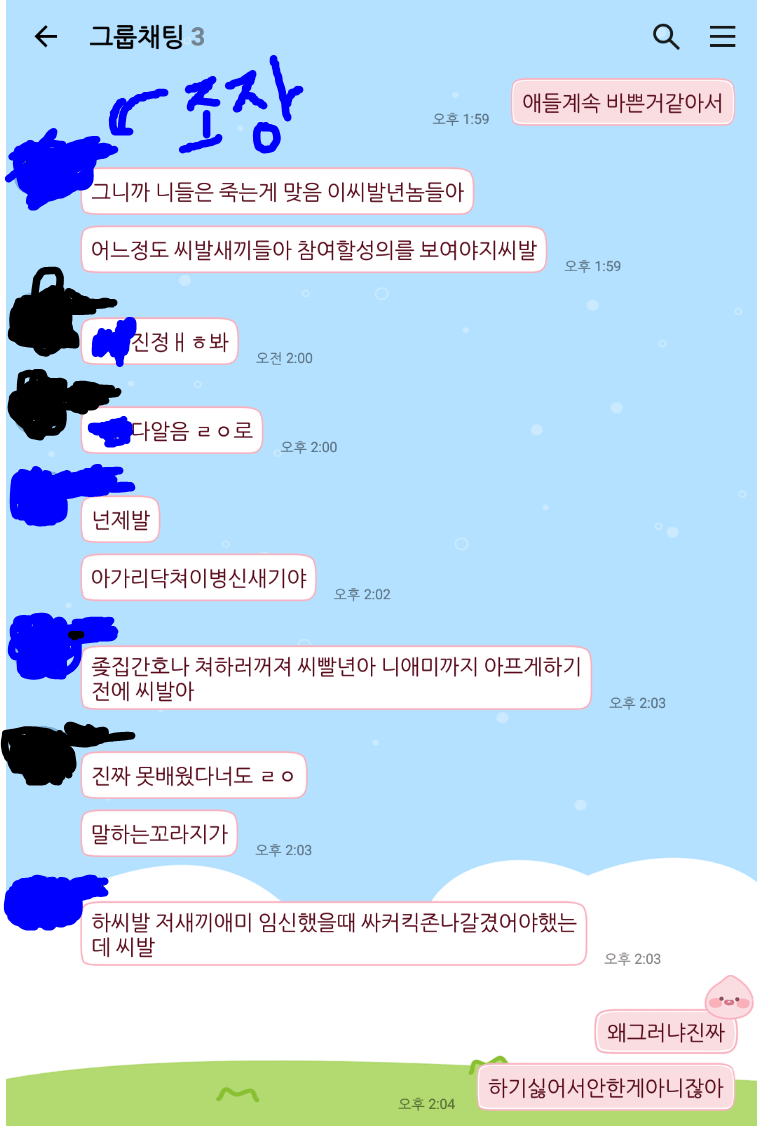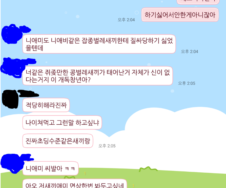 저정도면 양반이지 학교 수업때 만나자마자 묻지도 따지지도 않고 아갈빼이 안날린것만도 천만다행