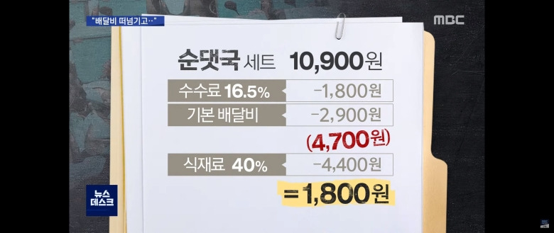 제목이 우리가 10900원에 순대국 배달시켜서 사먹으면 순대국집에 떨어지는돈이라고 지어야 맞는말이네요
