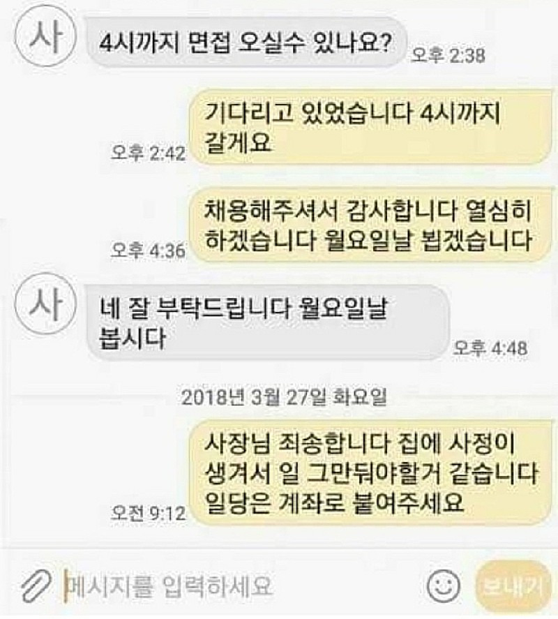 3월 17일에 면접보고 27일에 관뒀네 ㅋㅋ