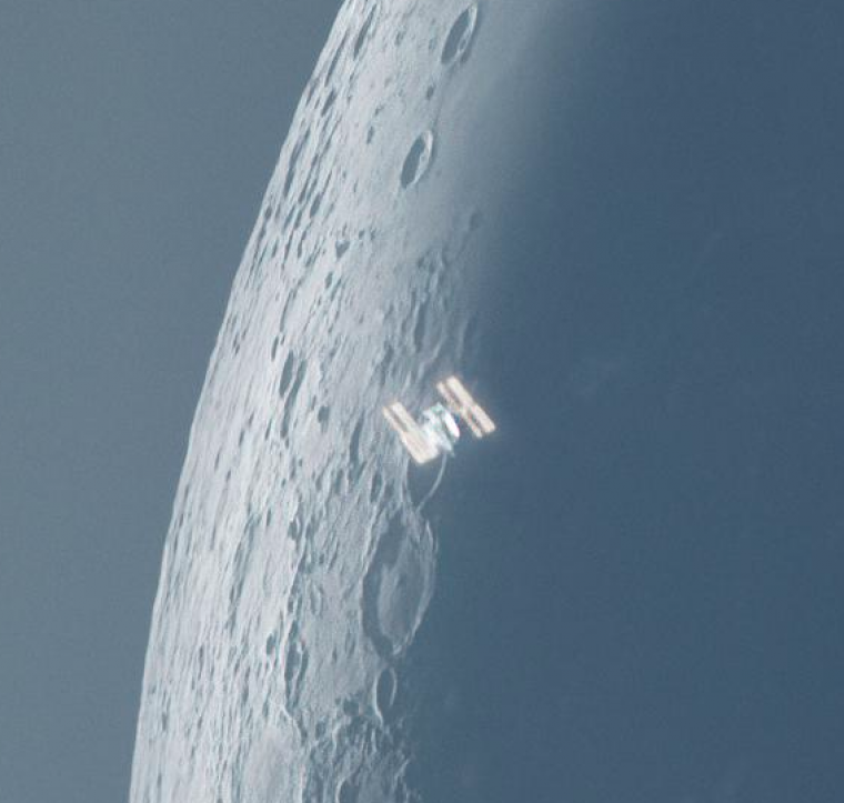 [유머] 초승달 위에서 찍힌 국제우주정거장
