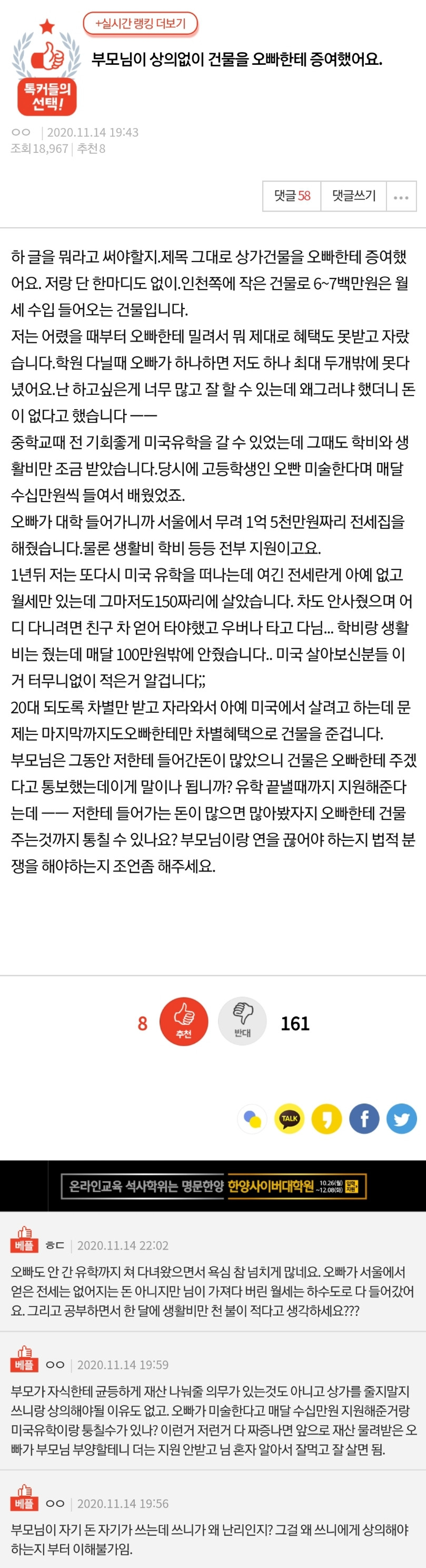 판춘문예라 주작일 확률이 매우 높긴한데 진실이라면 저기 부모가 현명한 선택을 했네