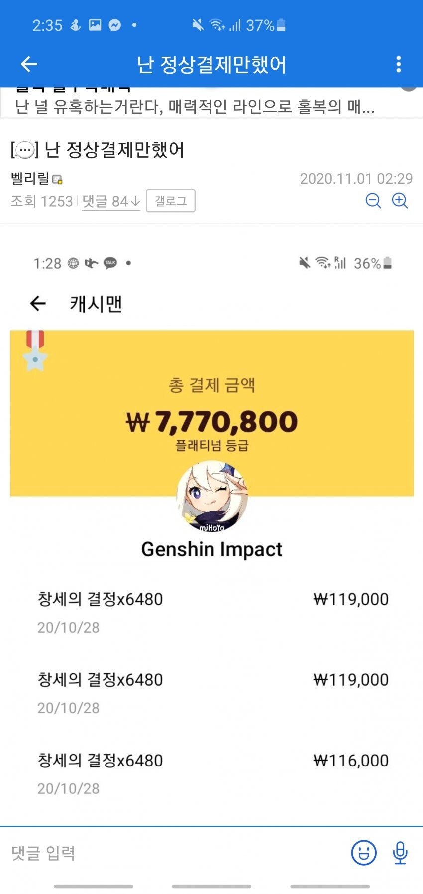 [유머] 베릴 원신 과금액