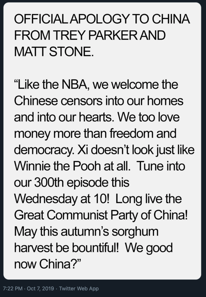 [유머] 중국에게 사과하는 사우스파크 제작진