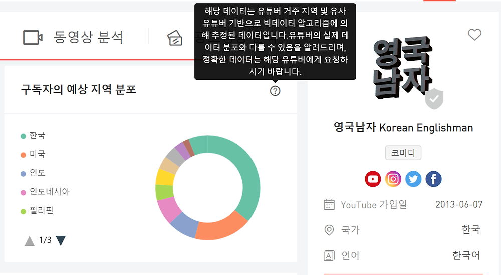 저 데이터는 구독자의 ip 주소로만 측정하는게 아니라 어떤 다른 유튜버를 구독했느냐에 따른 빅데이터를 가지고 분석한것이라고 함